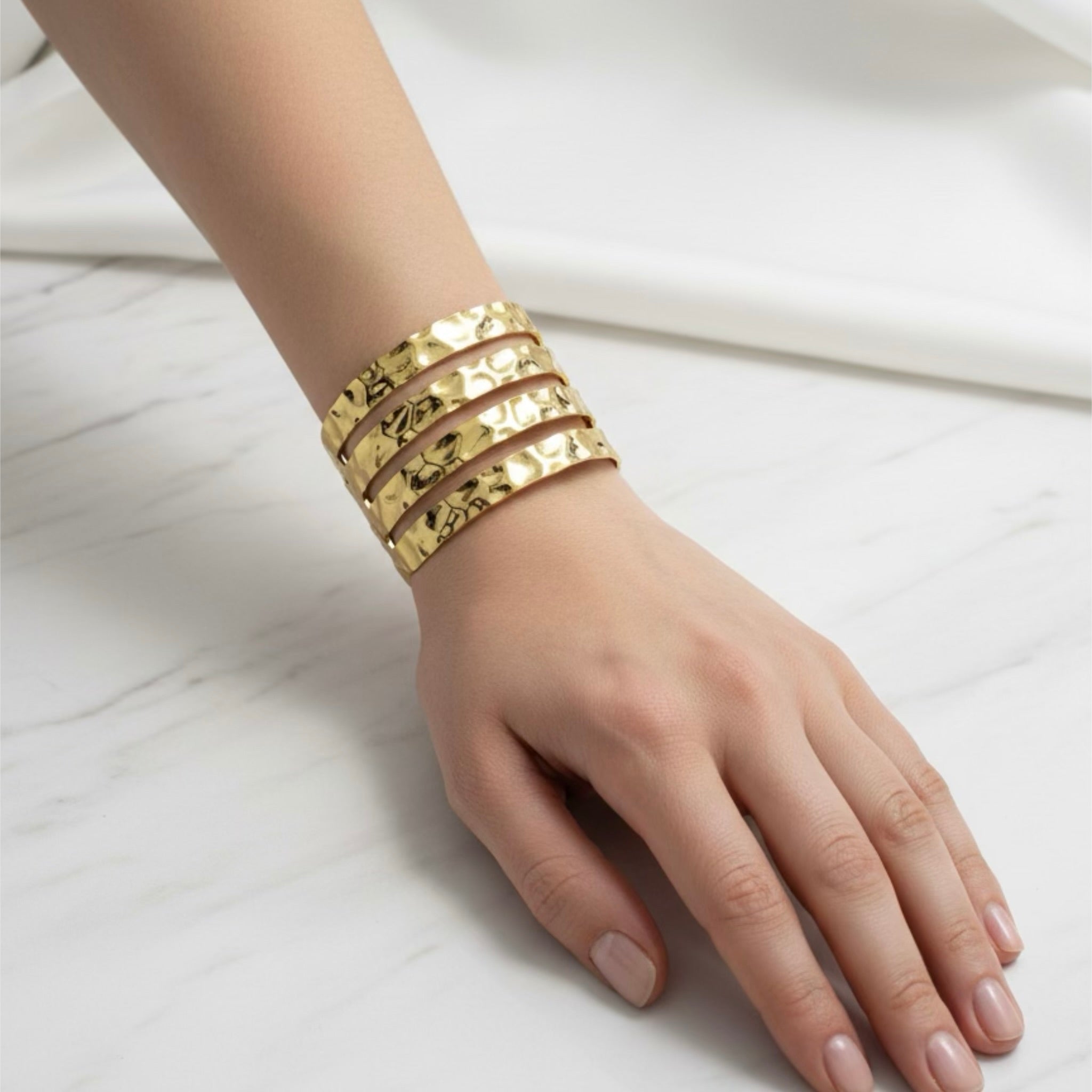 Embrace classic elegance with the Vintage Hammered Texture Cuff Bangle Bracelet. Its unique design and vintage charm make it a standout accessory for any occasion. Add this beautiful piece to your collection today and enjoy its timeless beauty and style.