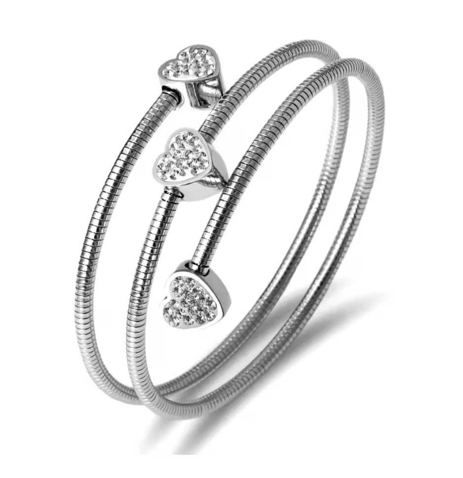 Elevate your look with this elegant heart crystal wire bangle, a refined blend of modern design and romantic detail. Crafted from durable stainless steel, this charm cuff features a delicate wire silhouette accented with a sparkling heart crystal, adding a graceful touch of shine.