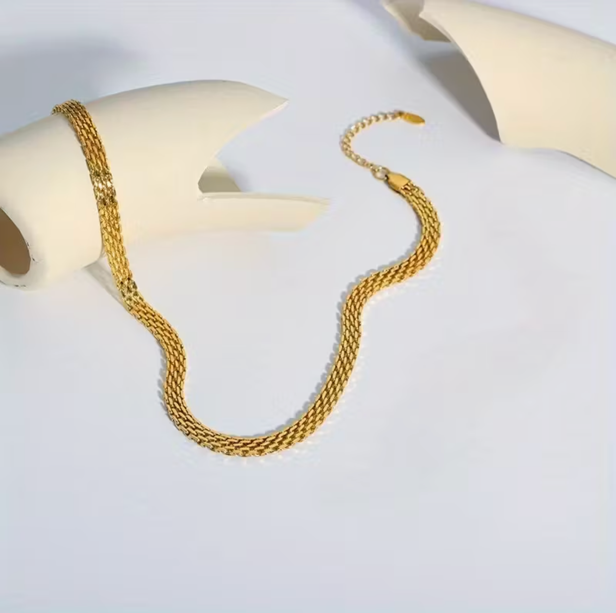 Experience the perfect balance of strength and sophistication with this Stainless Steel Woven Chain Necklace, featuring a luxurious 18K gold plated finish. Designed for modern women who appreciate elegant simplicity and lasting quality, this necklace adds a refined touch to any outfit — from casual chic to evening glam.