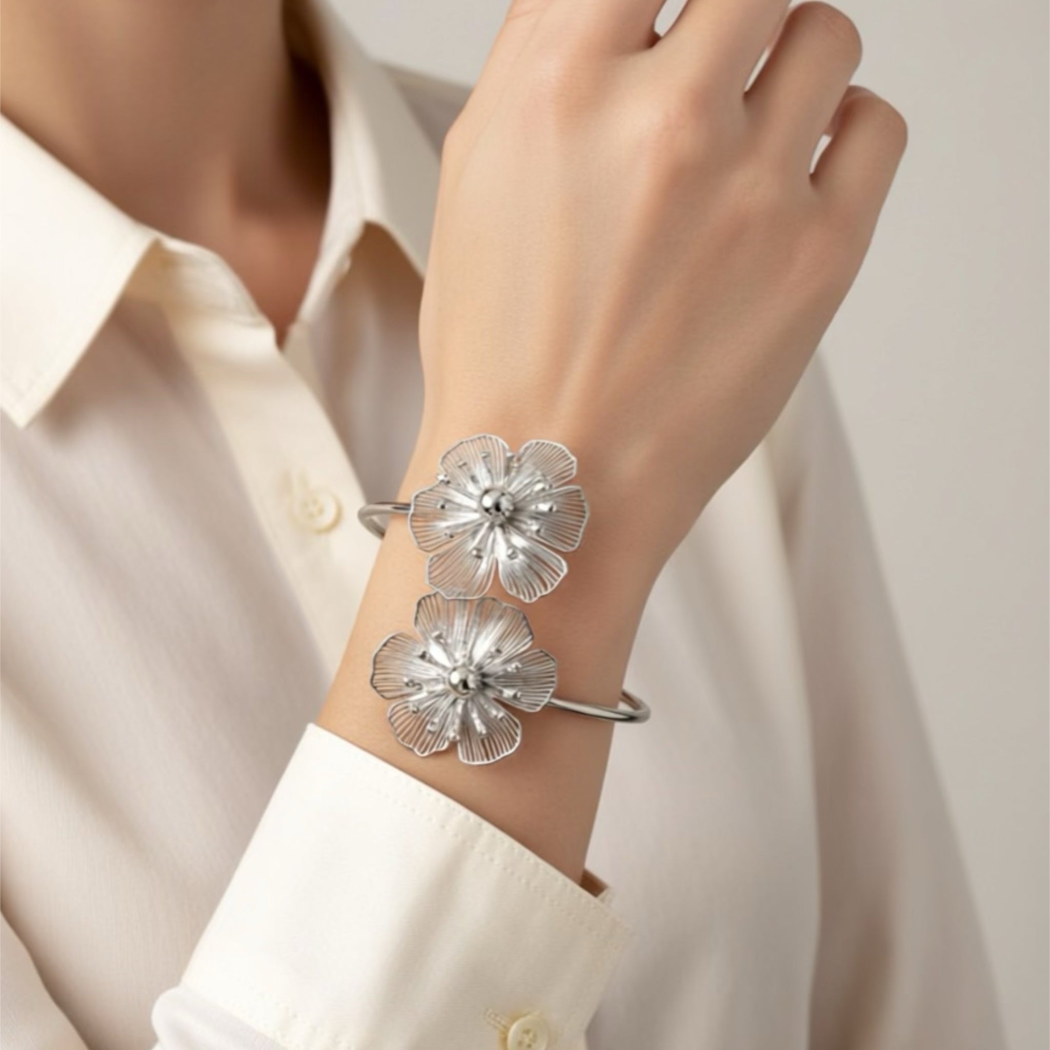Complete your look with this vintage silver stainless steel flower bracelet, designed to add a touch of timeless elegance to any outfit. Featuring a delicate floral motif and a classic vintage silver finish, this bracelet blends romantic charm with modern durability.