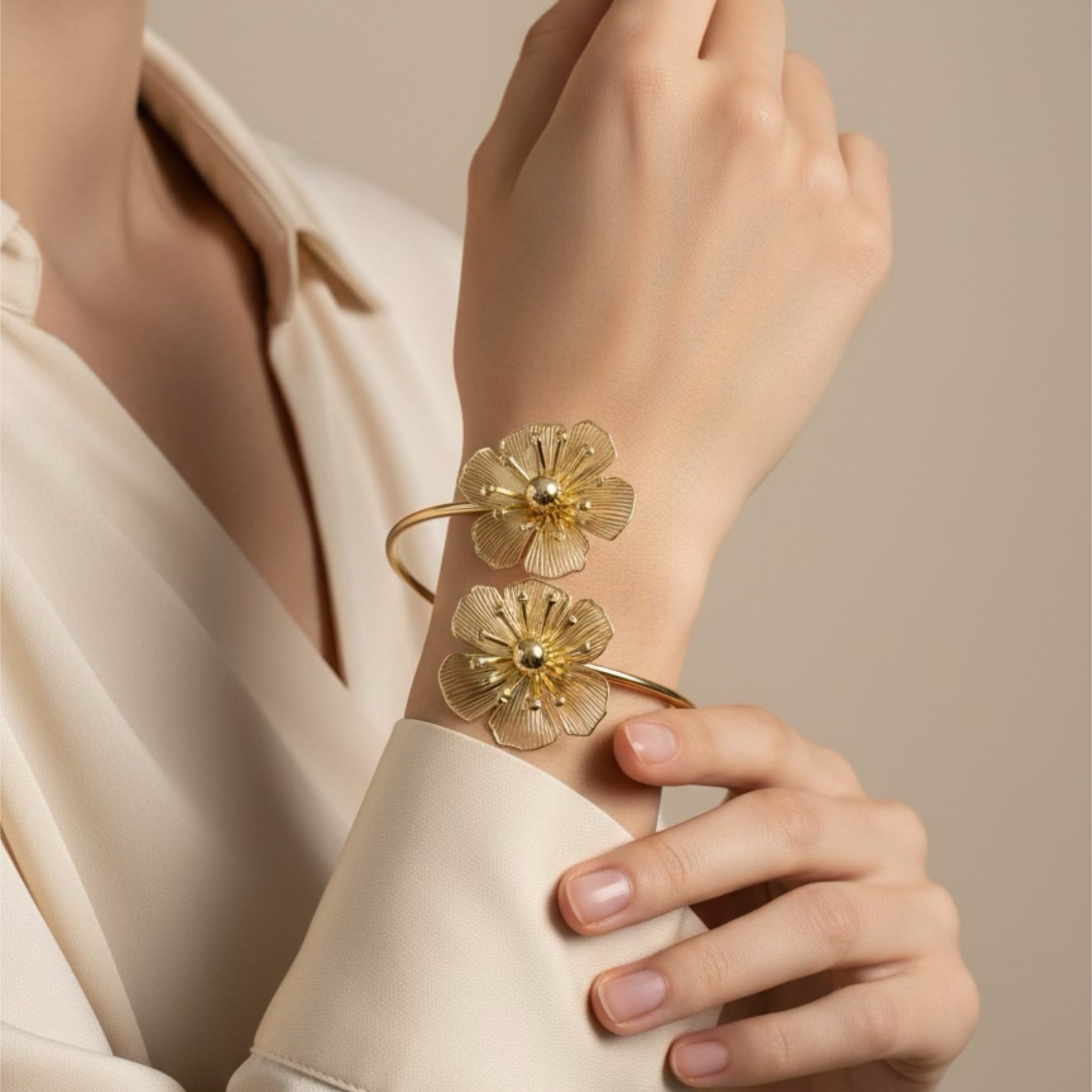 Enhance your look with this elegant geometric Flower Bracelet designed to bring refined beauty and modern charm together. Featuring a harmonious blend of geometric shapes and delicate floral elements, this bracelet adds a sophisticated, feminine touch to any outfit.