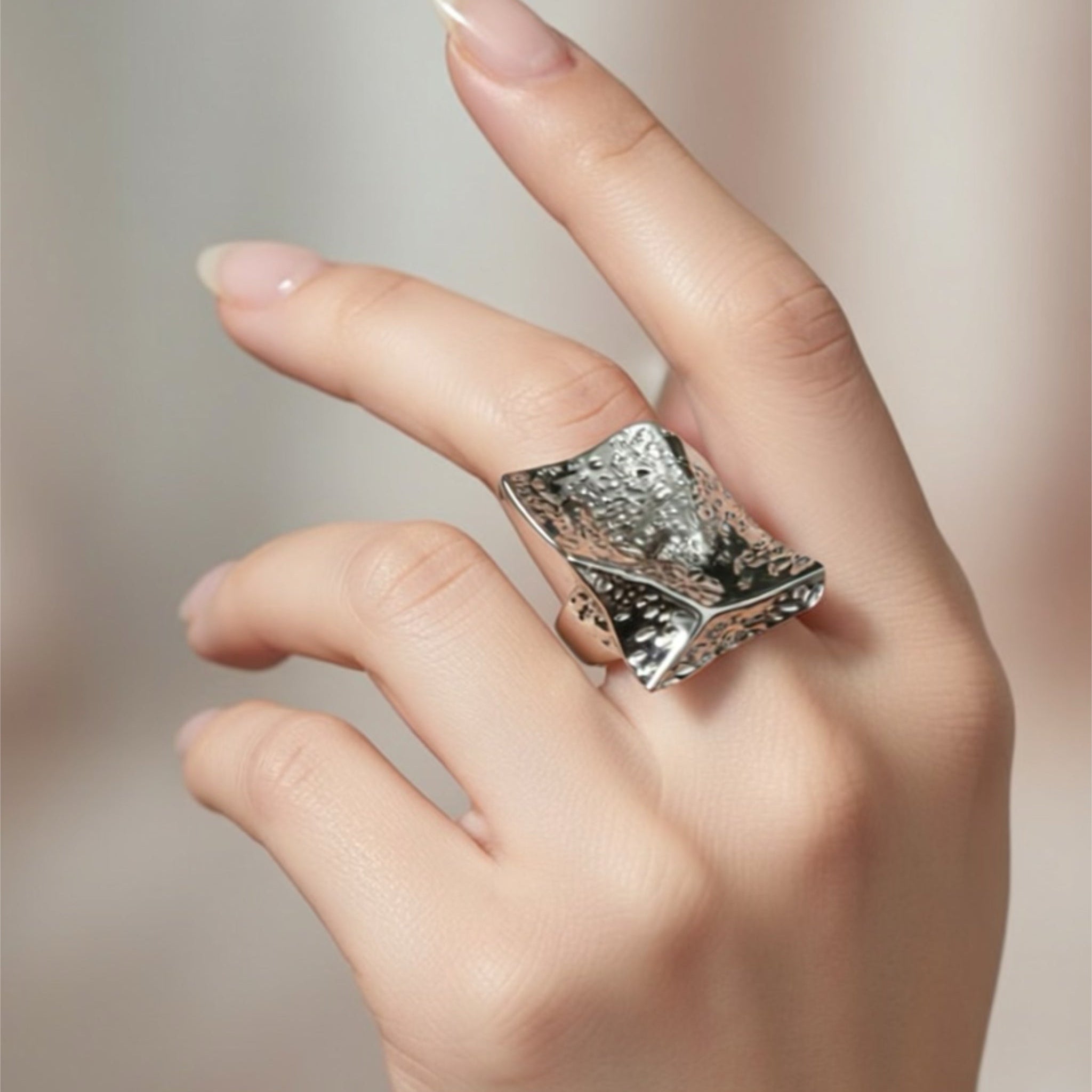 Make a modern style statement with this creative irregular geometric open ring, designed with a unique combination of square elements. Its artistic, asymmetrical shape delivers a bold yet minimalist look that adds instant character to any outfit.