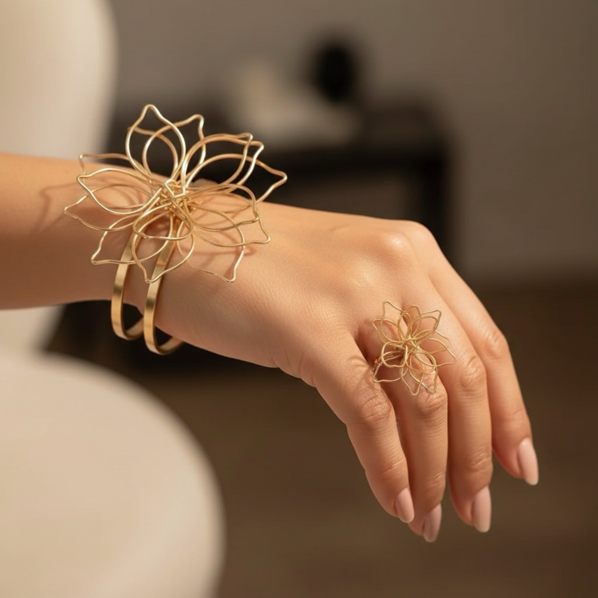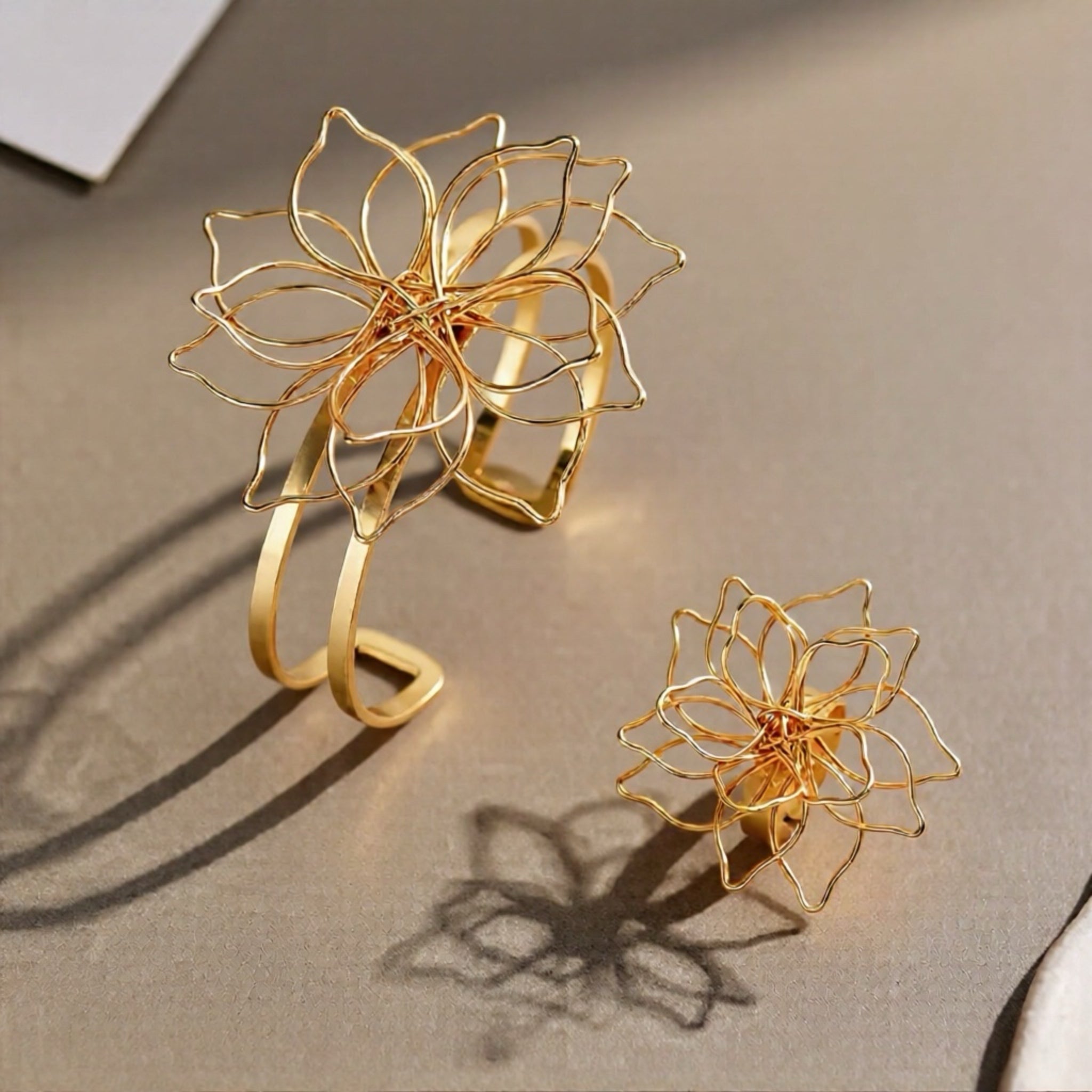 Step into the season with timeless femininity and floral charm. This 2-piece Women’s Jewelry Set, featuring a hollow flower open bracelet and matching ring, brings vintage beauty and effortless elegance to every outfit. Designed to reflect the freshness of spring and the glow of summer, this set adds a graceful touch whether you're dressing casually or going out for a special moment.