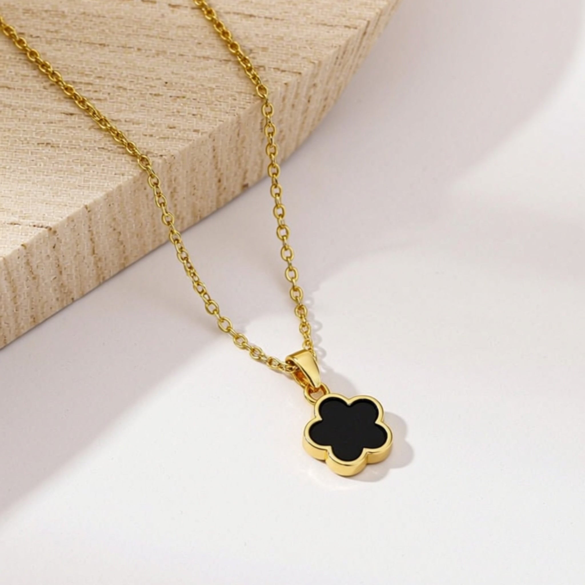 Add a touch of elegance and symbolism to your jewelry collection with this beautiful black clover necklace. Designed to represent luck, harmony, and timeless style, the clover pendant features a rich black finish that creates a striking contrast and a sophisticated look.
