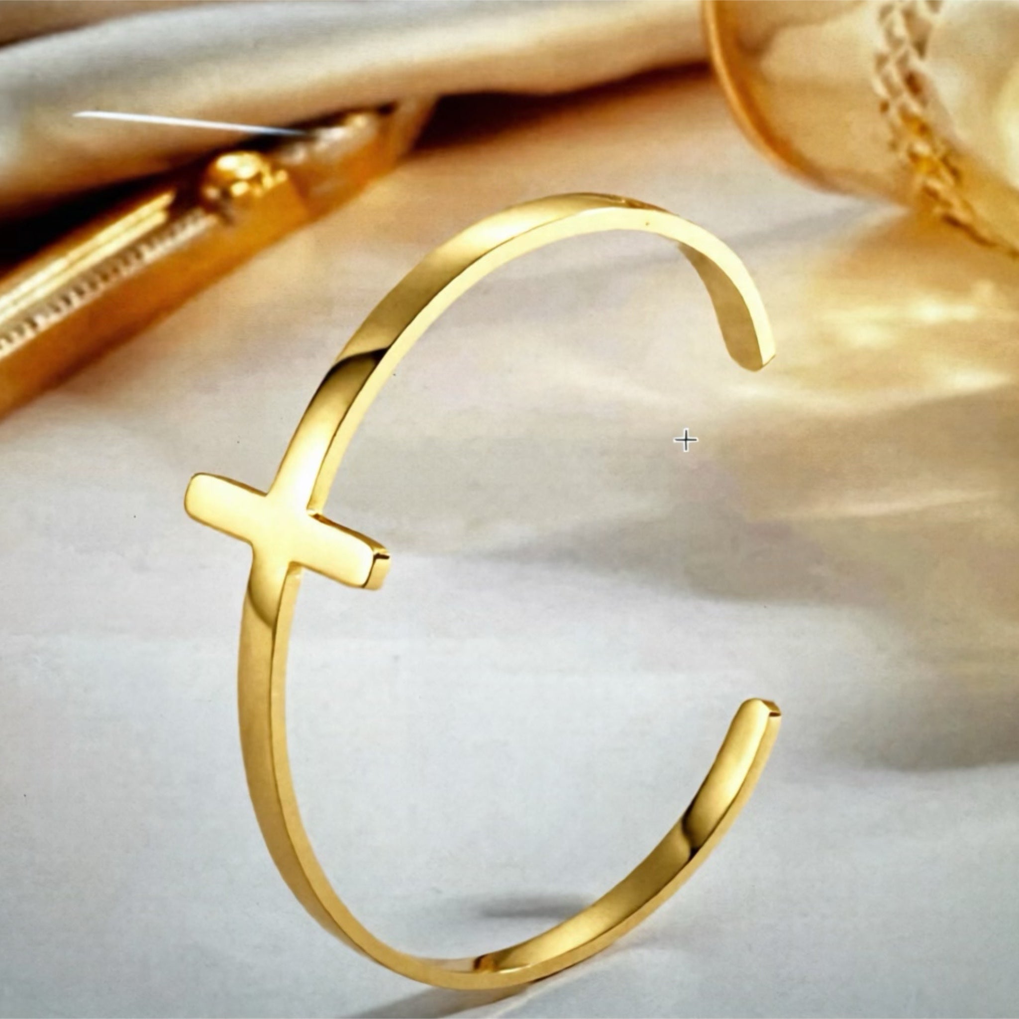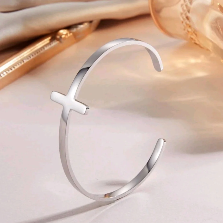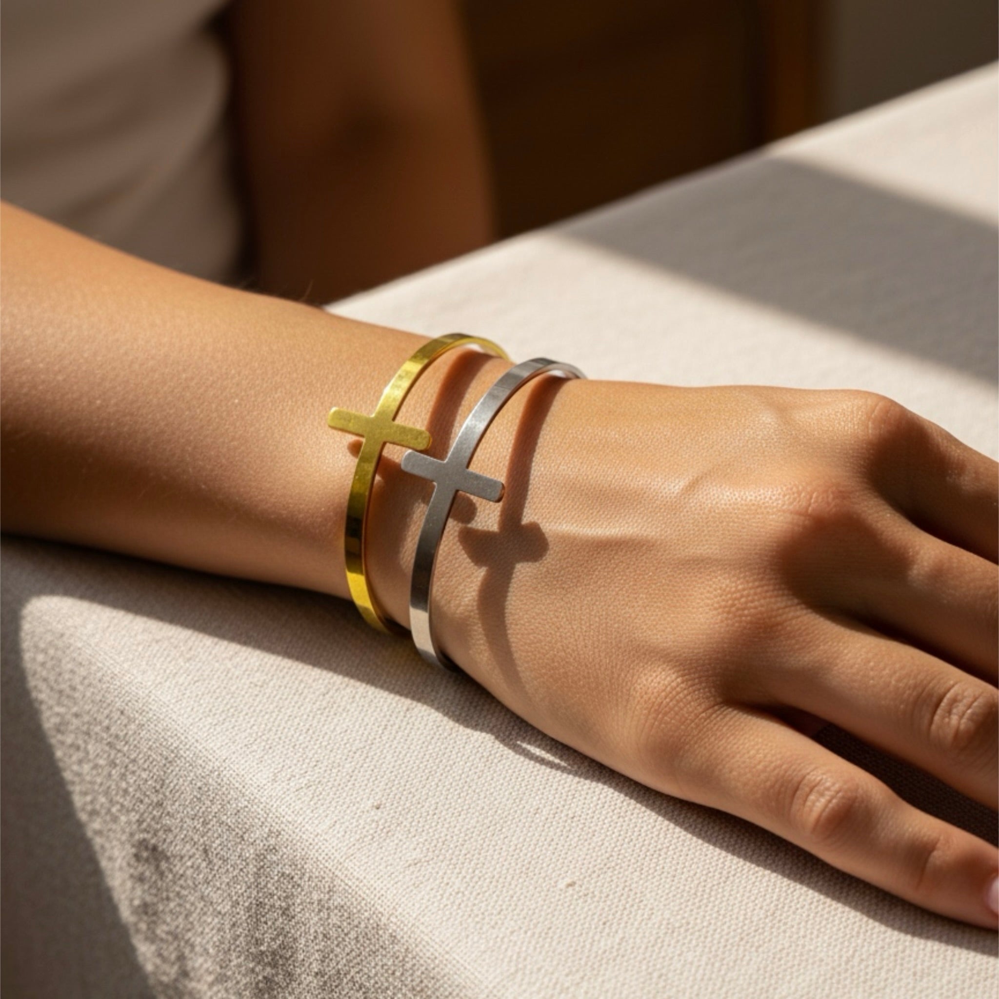 Introducing the perfect balance of faith-inspired elegance and modern minimalist style. This Cross Open Cuff Bracelet is designed for women who appreciate simplicity, symbolism, and timeless beauty. Featuring a sleek cross motif at the center, the bracelet is available in both golden and silver tones, making it effortless to match with any jewelry collection.