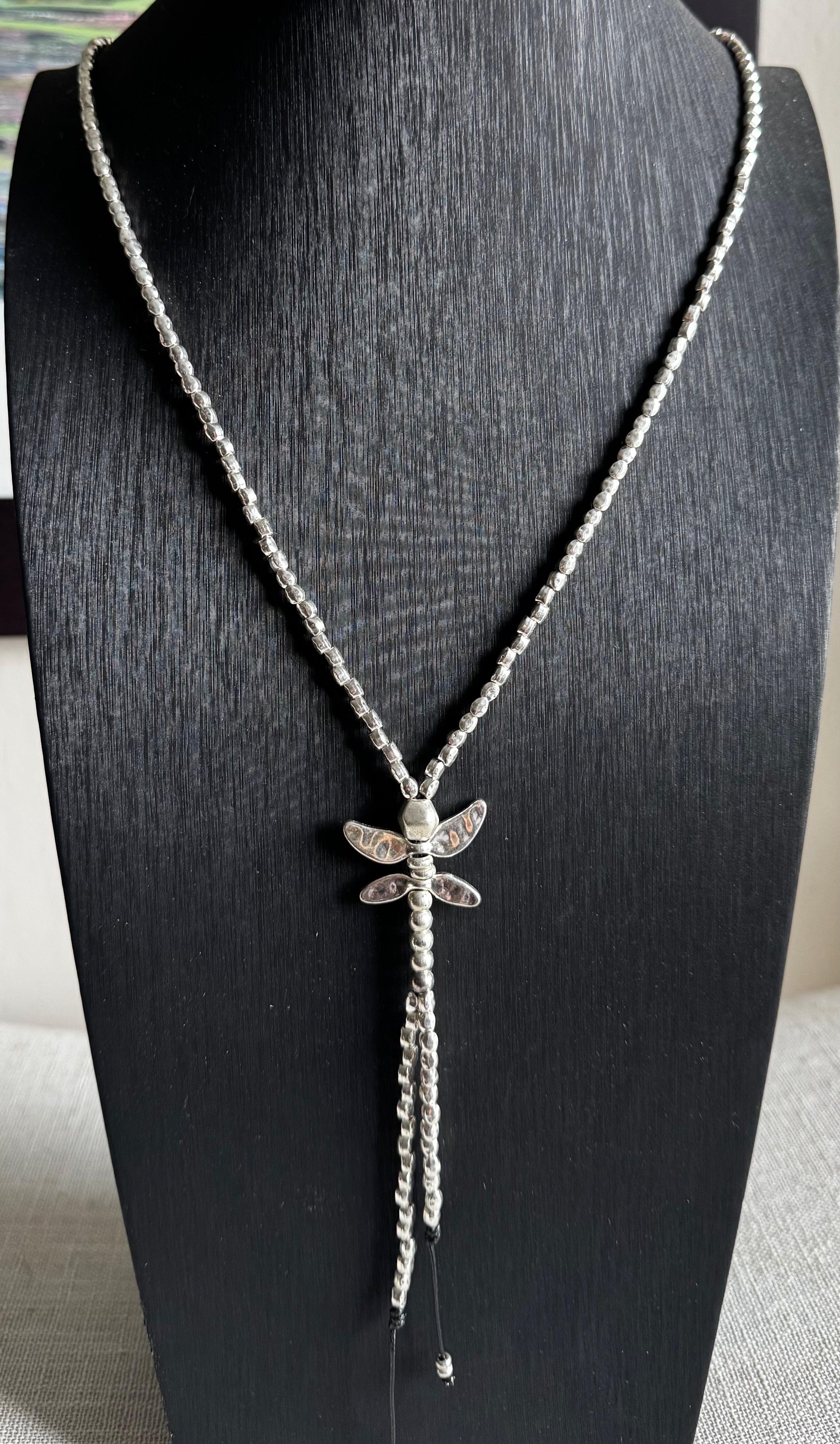 Elevate your style with a necklace that is both symbolic and effortlessly elegant. This Silver Long Abstract Dragonfly Pendant Necklace features a beautifully elongated dragonfly design, blending artistic curves with a modern minimalist touch. Crafted with a shimmering silver finish, its abstract silhouette captures the spirit of freedom, transformation, and lightness.