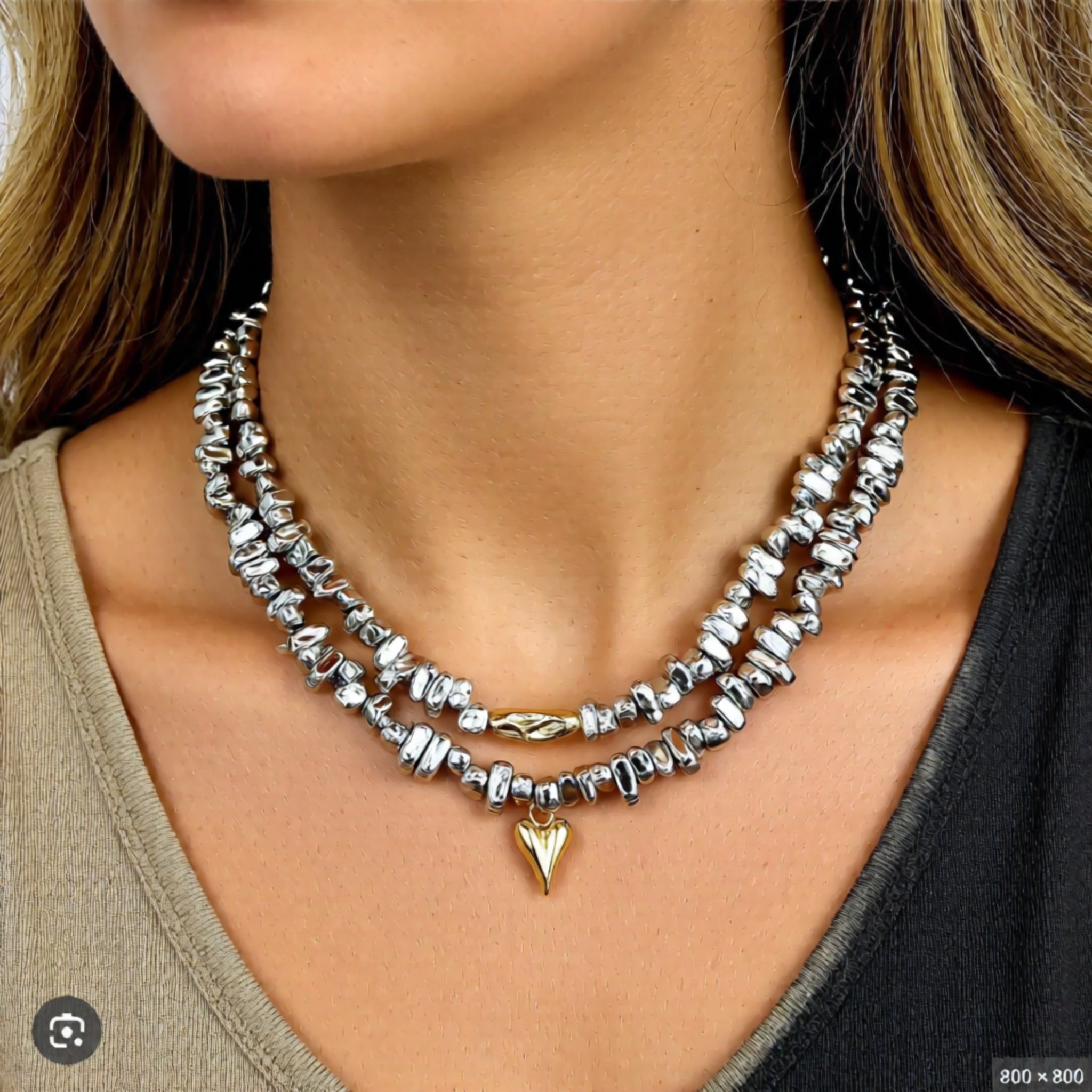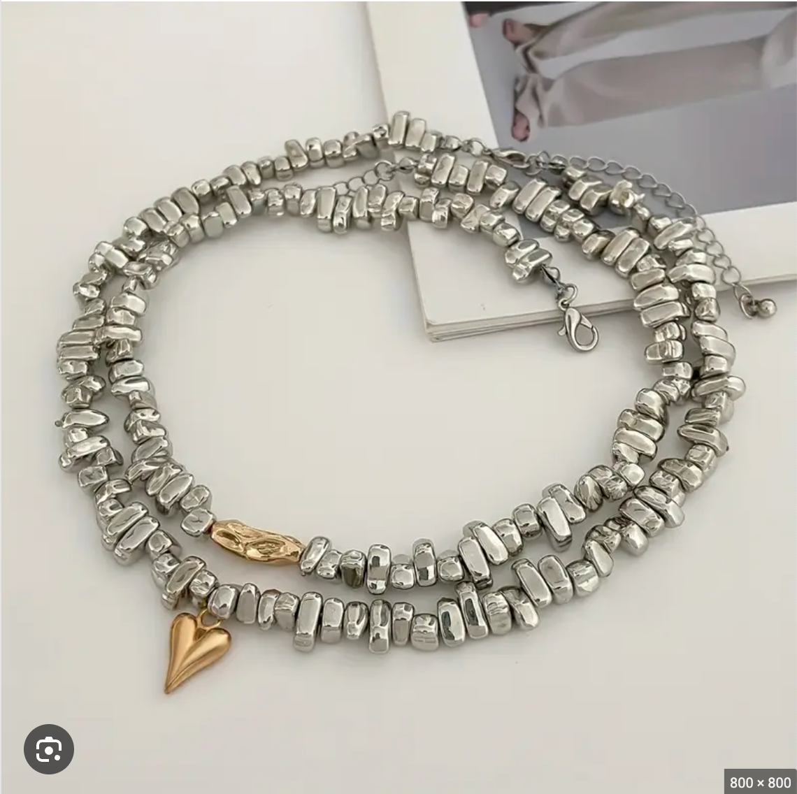 Celebrate individuality and timeless style with this vintage-inspired necklace featuring a unique irregular bead design and a charming heart-shaped pendant. The artistic, handcrafted look adds character and elegance, making this set a standout choice for women who love distinctive jewelry.