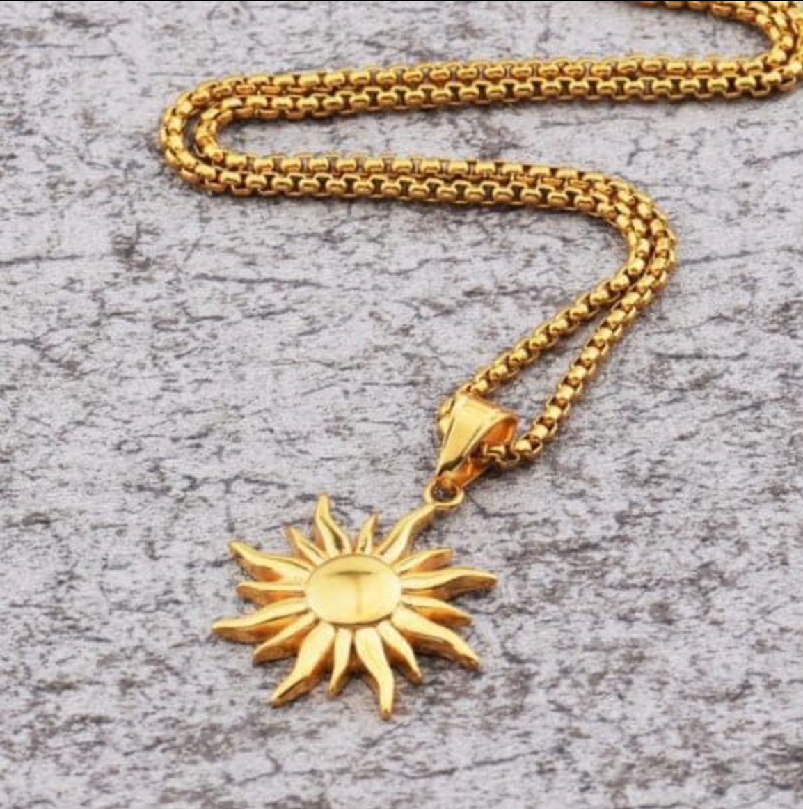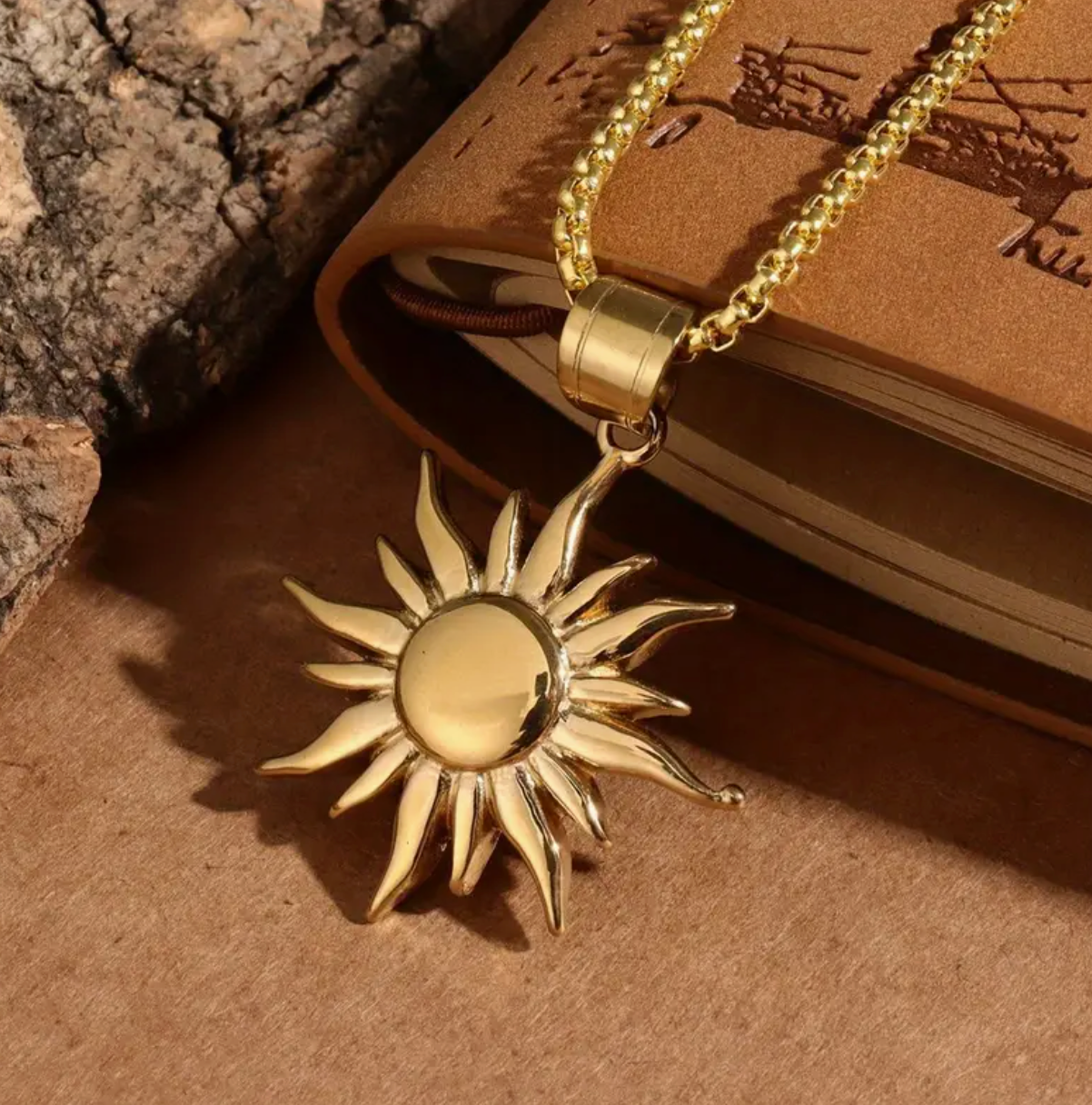 Add radiant charm with this stainless steel sunburst pendant necklace for women. Durable, adjustable, and perfect for everyday wear or gifting.