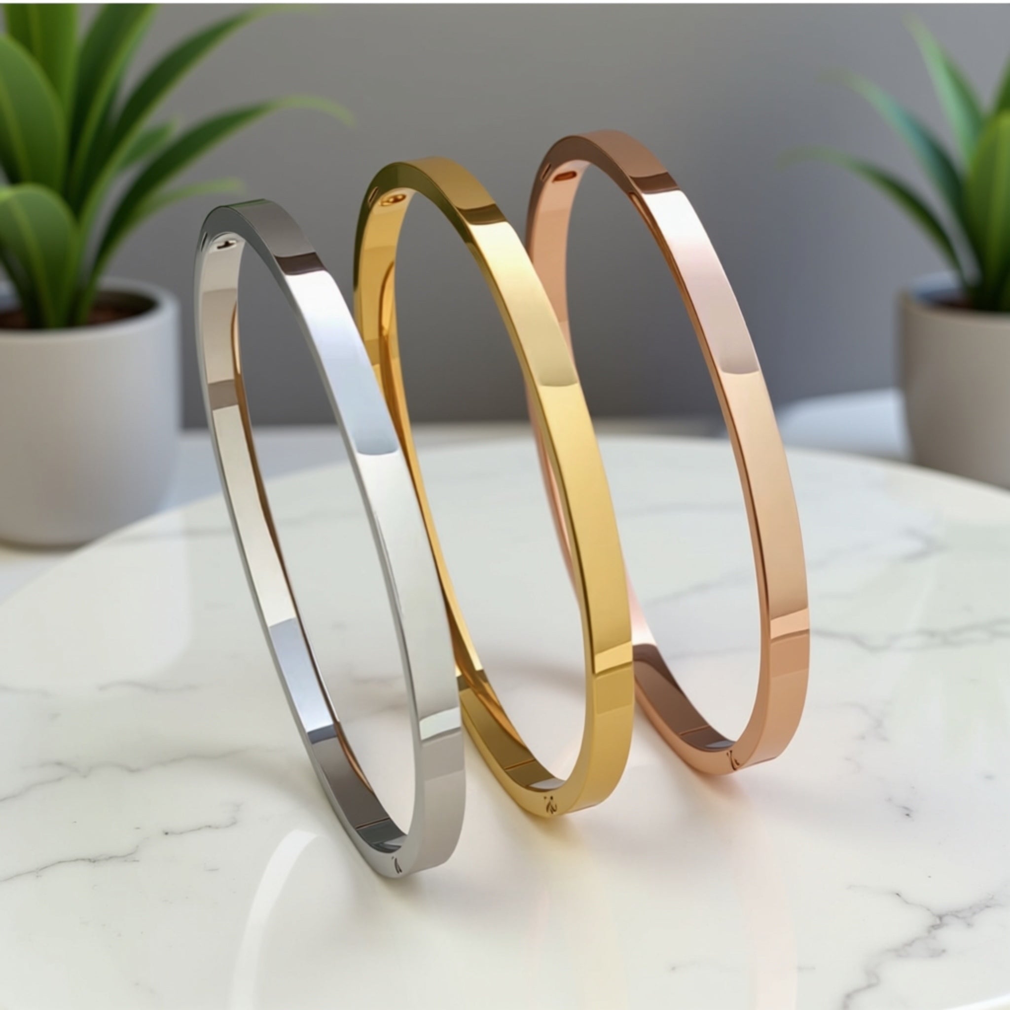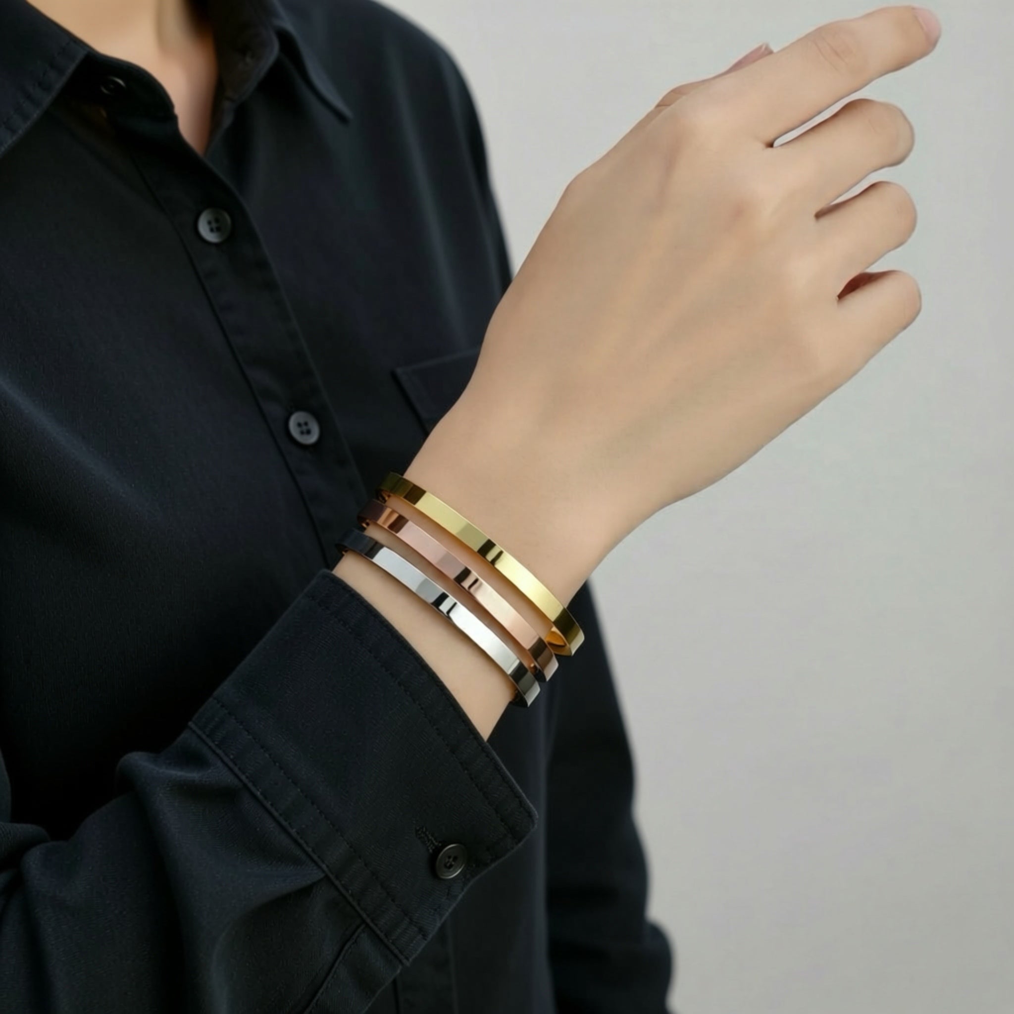 Elevate your everyday style with these stainless steel bracelets, beautifully finished in gold, silver, and rose gold tones. Designed for versatility and modern elegance, they can be worn individually for a minimalist look or stacked together for a bold, fashionable statement.