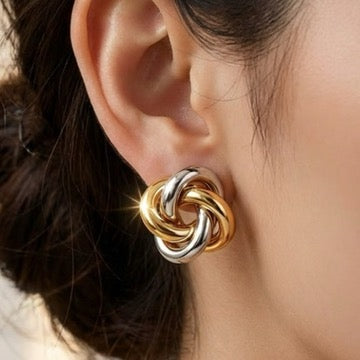 Add a modern twist to your jewelry collection with these two-color button spiral earrings. Designed with a unique spiral silhouette and a chic two-tone finish, they offer a perfect balance of minimalist style and eye-catching detail.