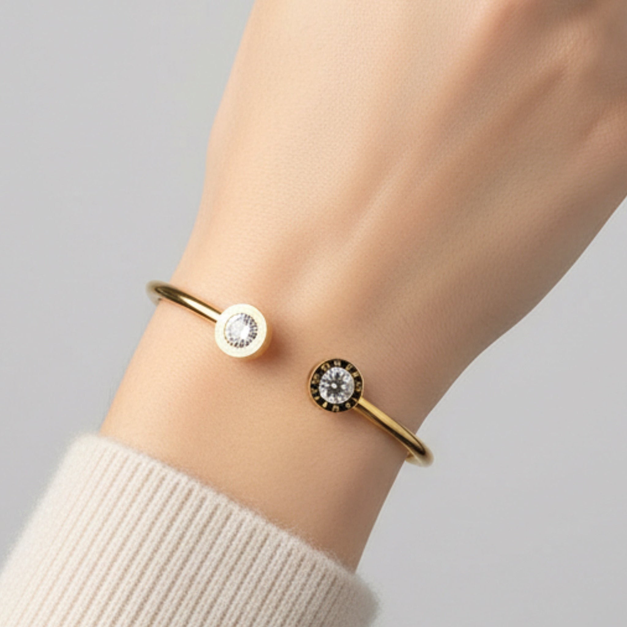 Add timeless elegance to your jewelry collection with this fashion women’s open cuff bangle, inspired by classic Roman design. Crafted from high-quality stainless steel and accented with sparkling cubic zircon stones, this bracelet delivers a refined, eye-catching look perfect for both everyday wear and special occasions.