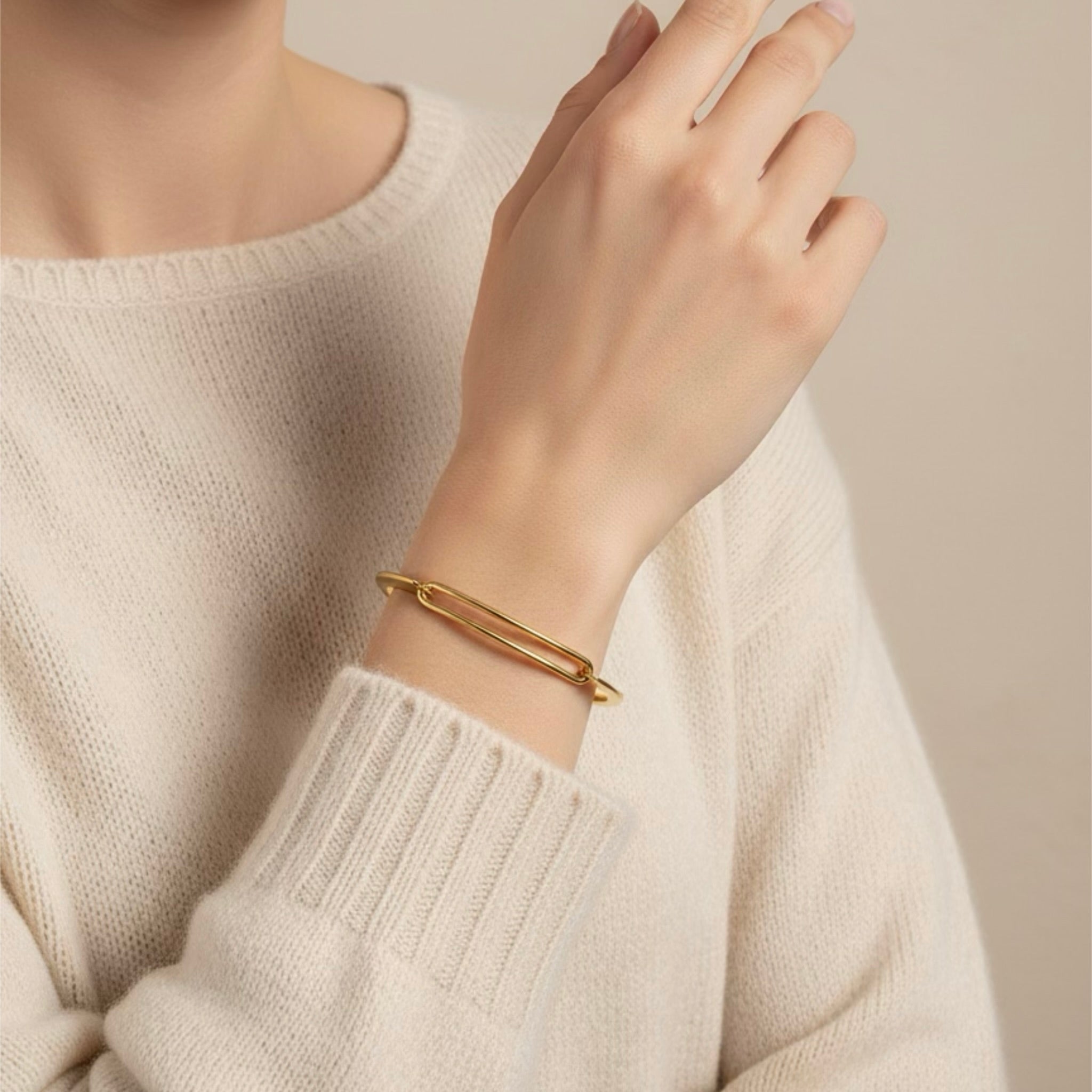 Add a touch of elegance to your everyday style with this gold plated bangle, designed to shine with a luxurious polished finish. Minimalist yet eye-catching, it’s the perfect accessory to elevate both casual outfits and special-occasion looks.